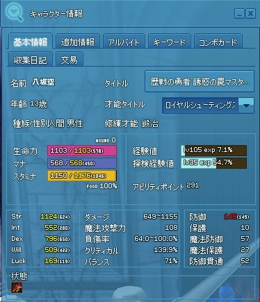そう言えば何となくバフ中のステ撮ったんでのせますね!