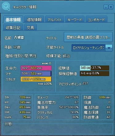 タイトル分DEX15とINT20、防御6ひいてもらえれば概ね転生直後ステータスですよ